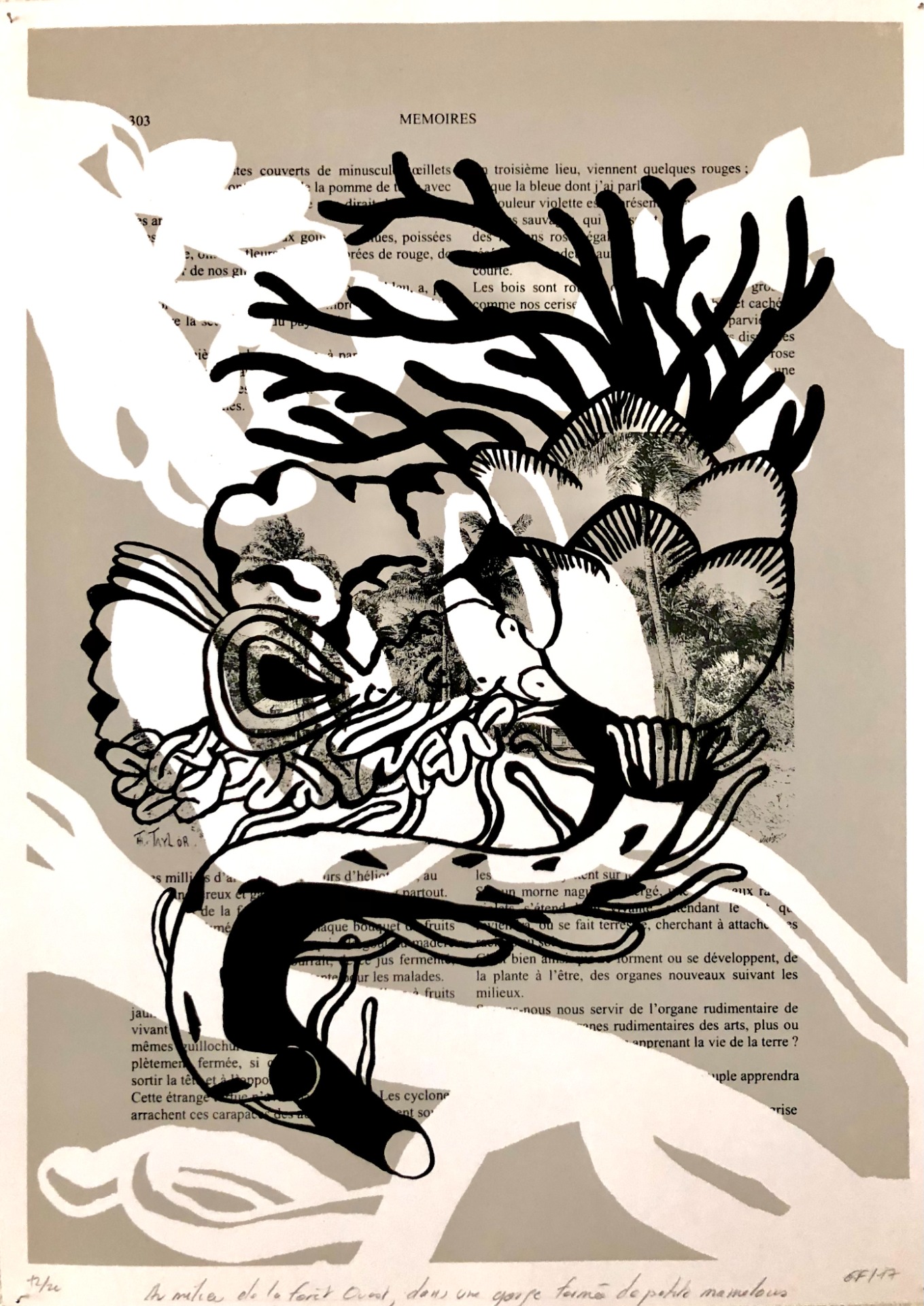 C'est cette autre forme de représentation que je recherche et que j'intègre à mes créations grâce à différents procédés d'impressions comme le frottage, le pochoir ou la gravure. Mes créations sont ainsi constituées d'un ensemble de matières et de formes, à la limite du figuratif et de l'abstrait.